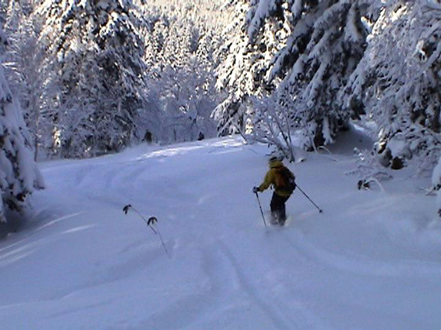 ![]() 最後は樹林帯を滑る |