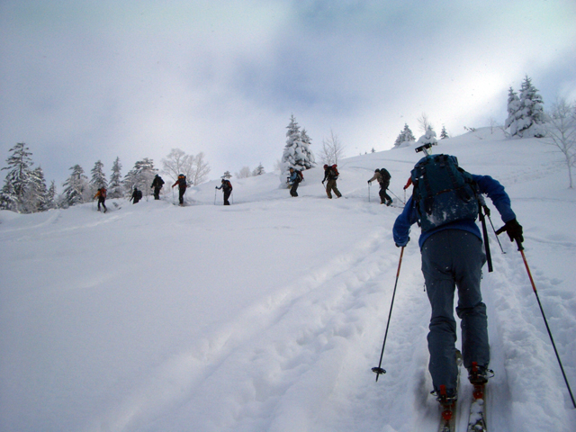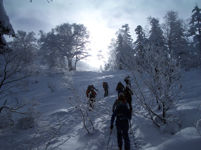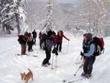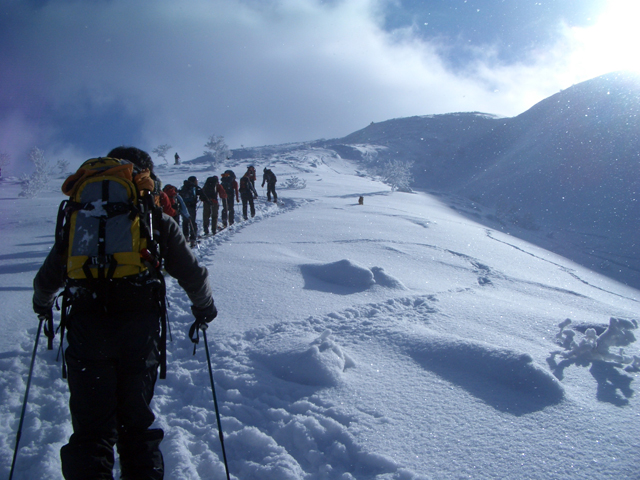 | 2007年1月3日(水) 三段山スキーツアー(三段山クラブ新年会ツアー) 三段山クラブ新年会・・毎回開催が危ぶまれるも、田中ファミリーの仕切り&準備のおかげで毎回大成功しているイベントだ。今回はなんと総勢16名での三段山ツアーとなった。 天候:雪のち晴れ 気温:-10〜-14度 風速:無風 雪量:不足気味 雪質:締まった雪の上に15センチほどのパウダー コース:白銀荘9:22〜11:45三段山山頂12:27〜14:55白銀荘 メンバー:旦那、コータロー&アイカ、ひでき、ナガさん、大場くん、T.papa&mama & Ai & yuu、Mix、かっちゃん、あいちゃん、スー、キャプテン、うらっち、ニッシー(順不同) 計16名 |