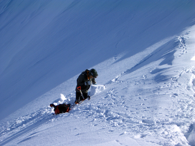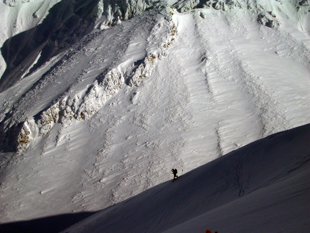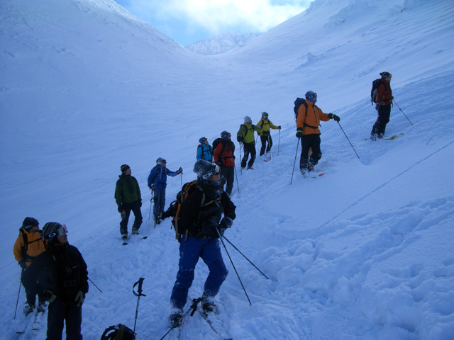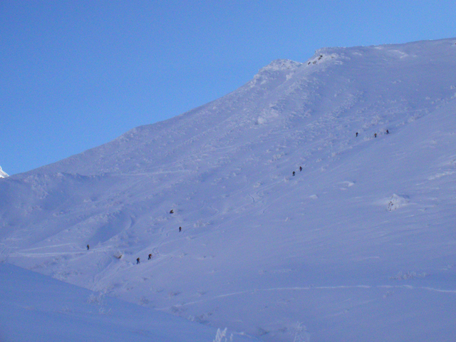 注意!)今の時期のフリコ沢への滑降は雪崩の可能性が高く、非常に危険です。