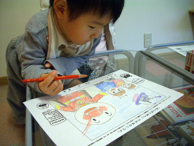 ![]() お絵かきにいそしむ次男 |