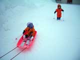 ![]() 白銀荘前の駐車場で遊ぶ |