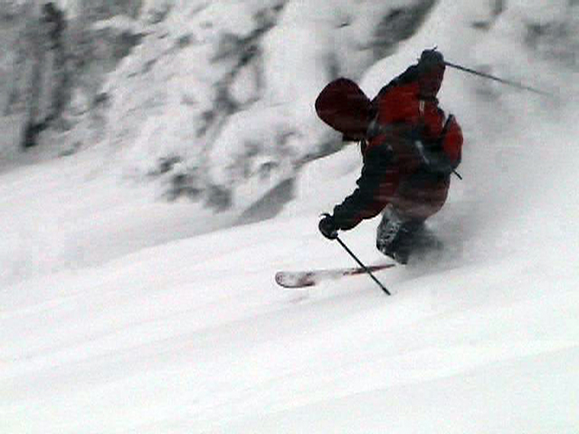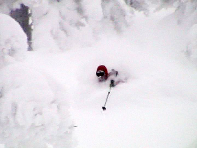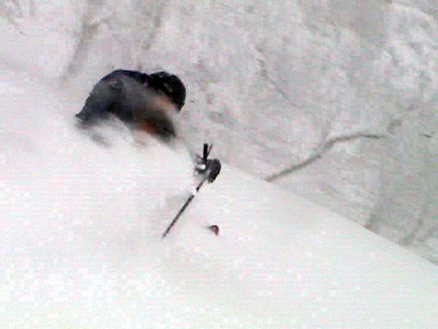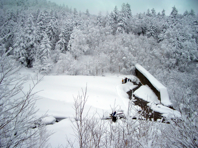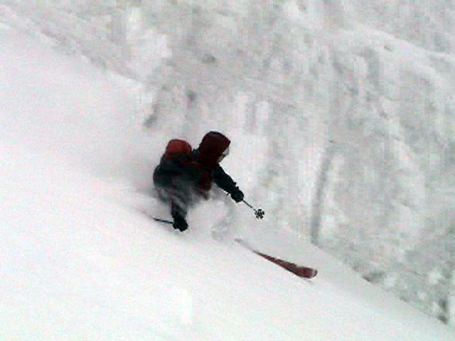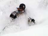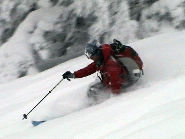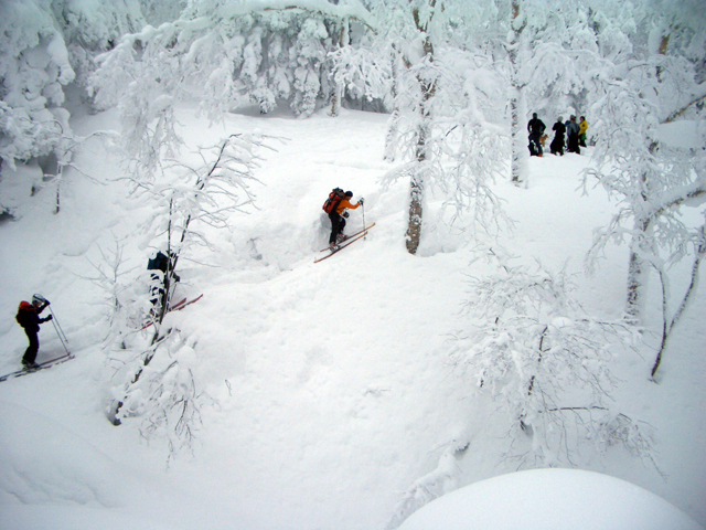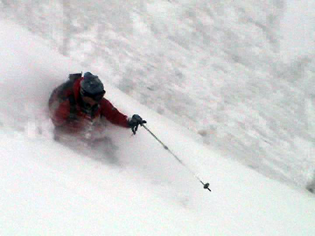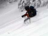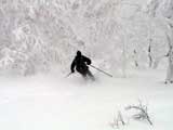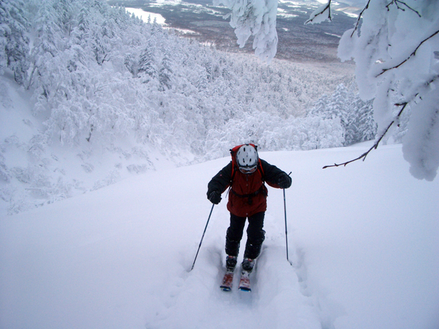 ここでブッシュの間の短い距離とはいえ今季初のオーバーヘッドパウダーにありつけた。この一瞬だけでも富良野岳に入った甲斐がある。雪質自体はとても良い。