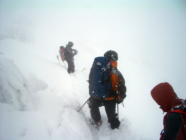 天候は雪。森林限界から上の視界は良くなさそうだ。