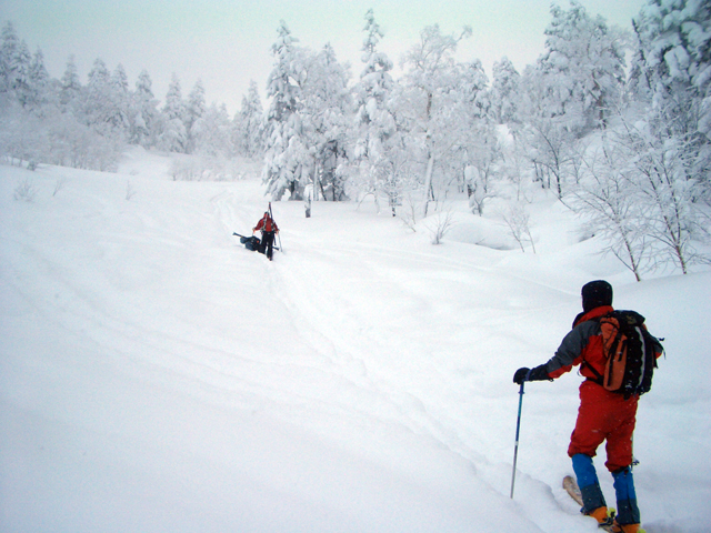 天候:曇り時々雪 気温:-15〜-10度 風:0〜5m 雪質:ハードバーンの上に50〜60センチ程度のパウダー コース:白銀荘9:15〜11:40三段山山頂11:50〜13:37白銀荘 メンバー:旦那、Hさん、Kさん、ルーキーSさん、N崎さん 計5名