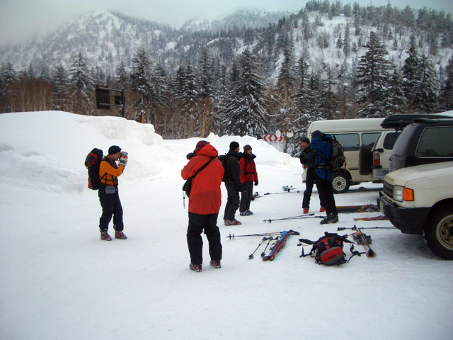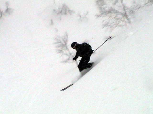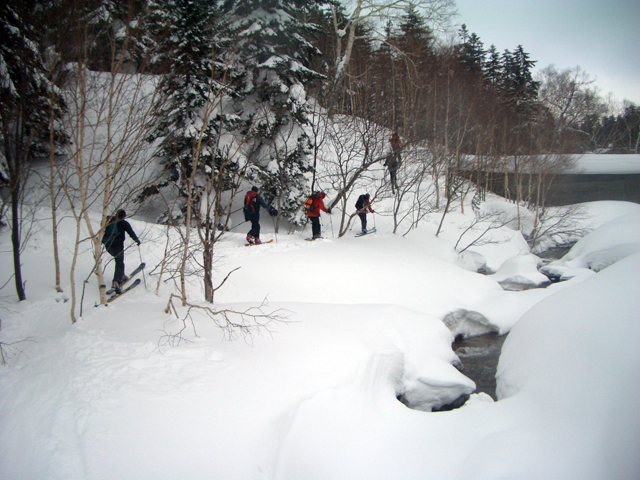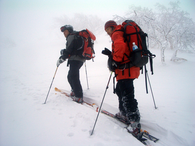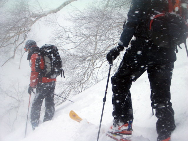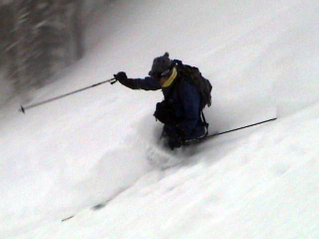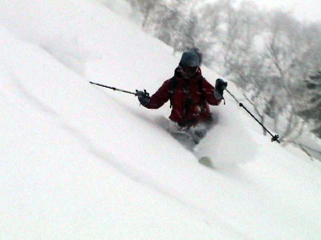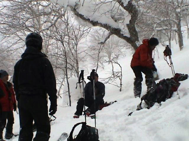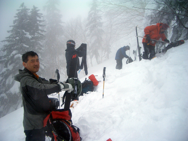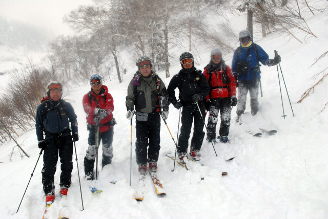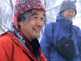 | 2007年2月18日(日) 富良野岳スキーツアー(阿部幹雄さんとのツアー) 先日の暴風雪で十勝山系のコンディションは最悪になっていた。 三峰山では雪崩発生。森林限界より上の雪は飛ばされてどこも固いシュカブラとハイ松だらけ。どこもまともには滑れないという情報が入ってくる。 こういった日には家で溜まった家事を片付けるか、ゲレンデにでも行くのがベストなのだろうが、悲しい性でやっぱり山に入ってしまう。 こういった状況では、濃い樹林帯と深い谷のおかげでどこかには良い雪があることが多い富良野岳に望みを託すことになる。 本日は、ゲストとして阿部幹雄さんが同行してくれた。 写真家、ビデオジャーナリスト、雪崩事故防止研究会の代表であり、旦那が深い感銘を受けた『生と死のミニャ・コンガ』の著者でもある。 天候:曇り時々雪 気温:-4〜-6度 風速:無風〜2m/s 雪量:十分(例年よりもブッシュ多し) 雪質:ウィンドパック気味の20センチ程度のパウダーの下にハードバーン コース:バーデンかみふらの(8:40)〜(12:35)1450m(12:58)〜バーデンかみふらの(13:36) メンバー:旦那、スーさん、キャプテン、kinpeiさん、ヒロさん、阿部幹雄(以降みきお)さん、naokiss 計7名 |