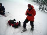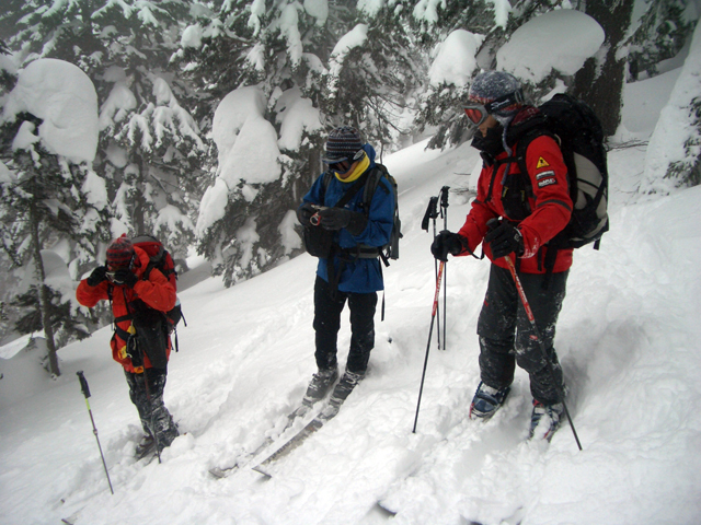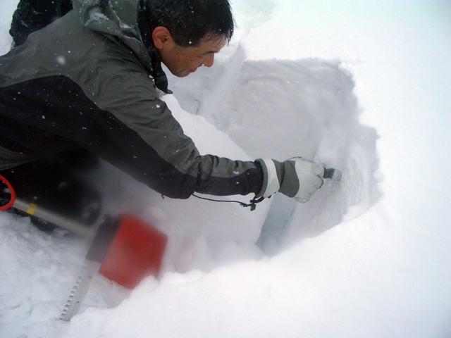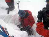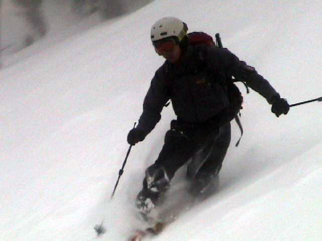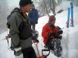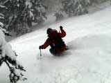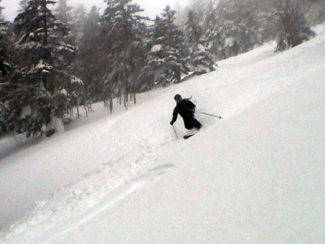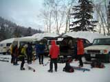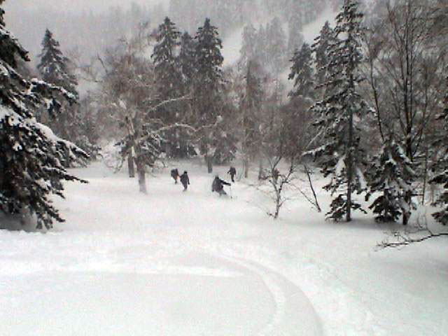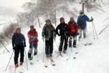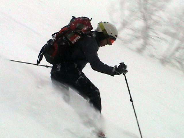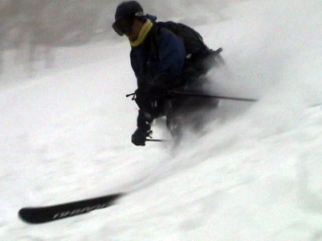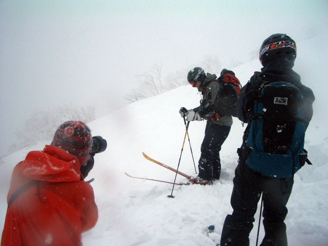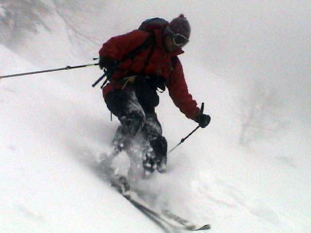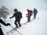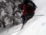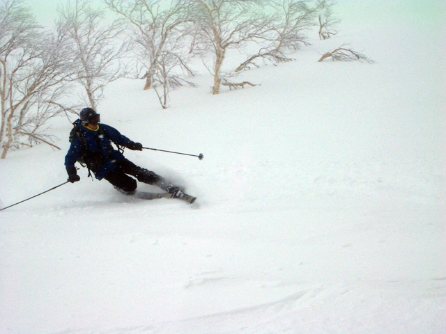 | 2007年2月18日(日) 富良野岳スキーツアー(阿部幹雄さんとのツアー) 先日の暴風雪で十勝山系のコンディションは最悪になっていた。 三峰山では雪崩発生。森林限界より上の雪は飛ばされてどこも固いシュカブラとハイ松だらけ。どこもまともには滑れないという情報が入ってくる。 こういった日には家で溜まった家事を片付けるか、ゲレンデにでも行くのがベストなのだろうが、悲しい性でやっぱり山に入ってしまう。 こういった状況では、濃い樹林帯と深い谷のおかげでどこかには良い雪があることが多い富良野岳に望みを託すことになる。 本日は、ゲストとして阿部幹雄さんが同行してくれた。 写真家、ビデオジャーナリスト、雪崩事故防止研究会の代表であり、旦那が深い感銘を受けた『生と死のミニャ・コンガ』の著者でもある。 天候:曇り時々雪 気温:-4〜-6度 風速:無風〜2m/s 雪量:十分(例年よりもブッシュ多し) 雪質:ウィンドパック気味の20センチ程度のパウダーの下にハードバーン コース:バーデンかみふらの(8:40)〜(12:35)1450m(12:58)〜バーデンかみふらの(13:36) メンバー:旦那、スーさん、キャプテン、kinpeiさん、ヒロさん、阿部幹雄(以降みきお)さん、naokiss 計7名 |