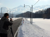 ![]() カウントダウンの後、 9時20分46秒 かっちゃんが滑降開始 |