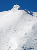 ![]() 上部は広くて比較的なだらかな斜面だが、その先で急に落ち込む |