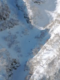 ![]() シュートの終端近くがもっとも細くなる 9時22分 滑降終了 |