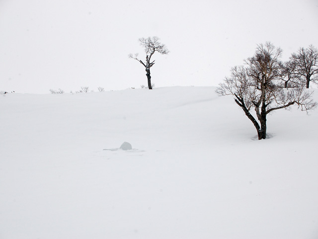 雪も悪けりゃ天気も悪い。そんな覚悟で出発した三段山。でも、行けば行ったで楽しいものです。