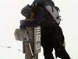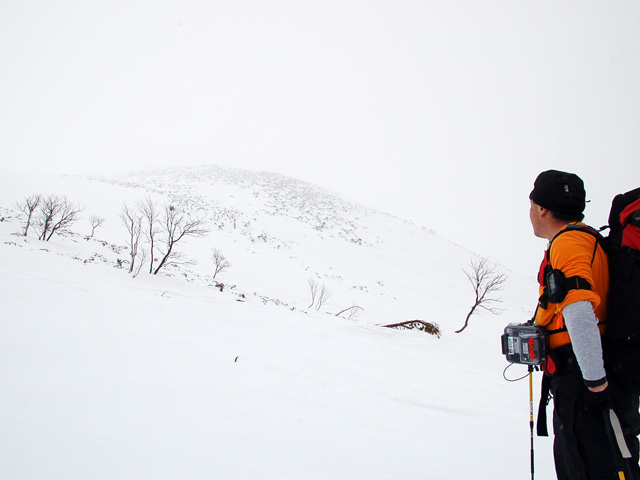 ホワイトアウト気味の中、デポ旗を発見