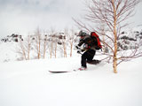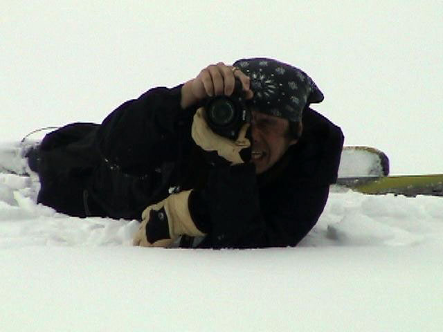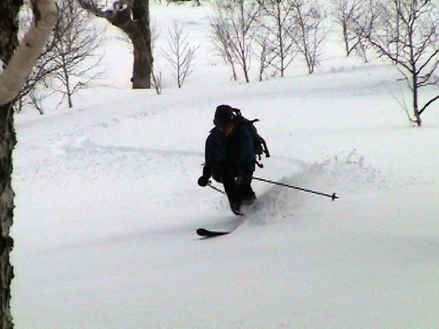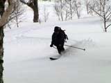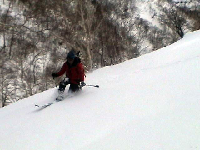 ふつーは、テレマークターンは出来ないコンディション。kipeiさん凄い