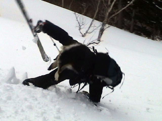 油断すると板が刺さる雪質