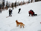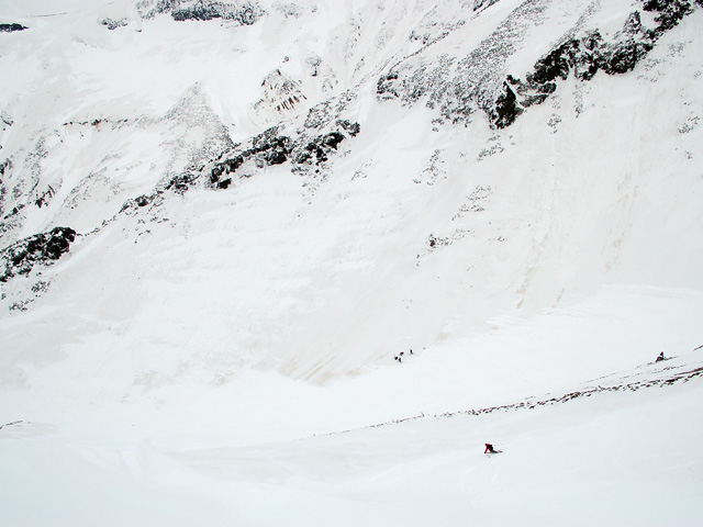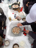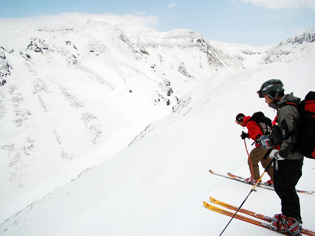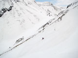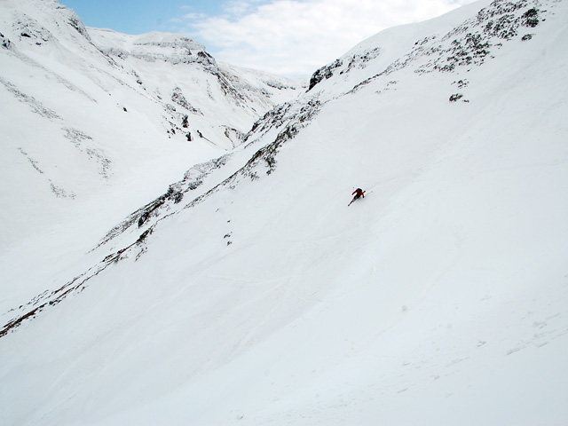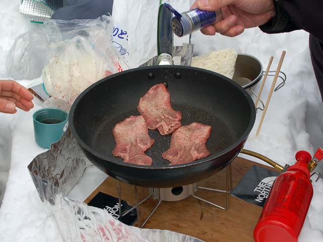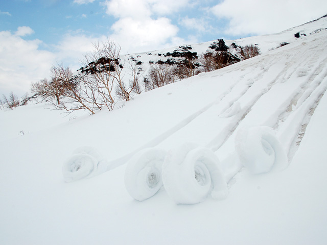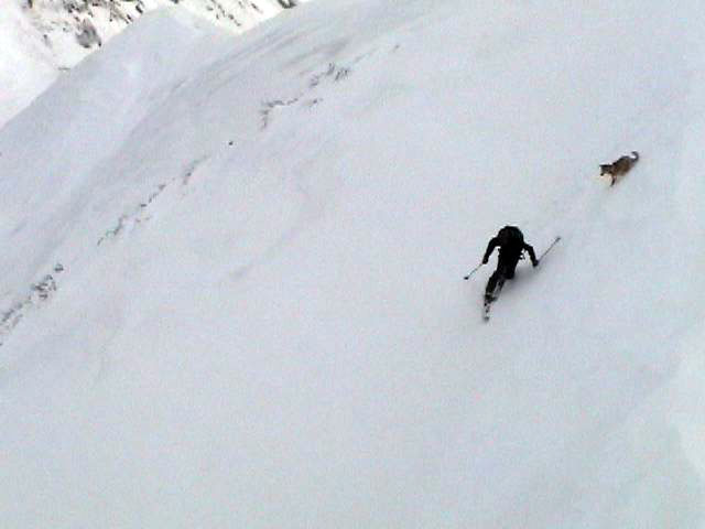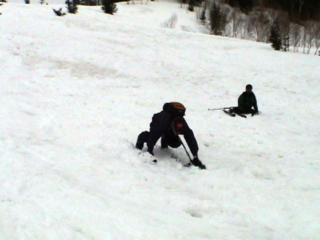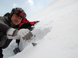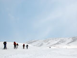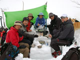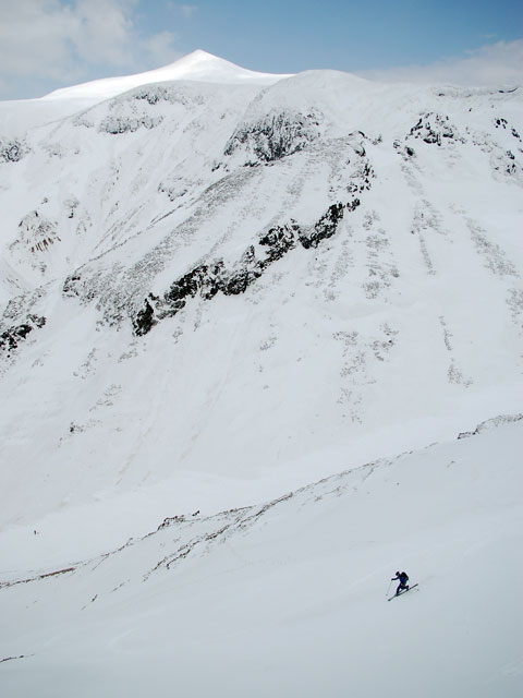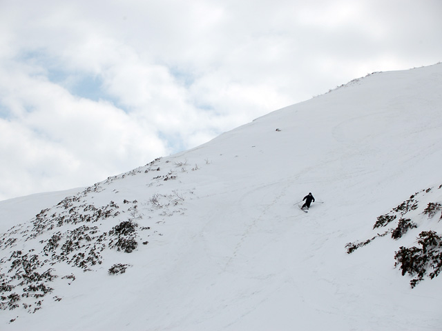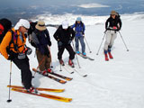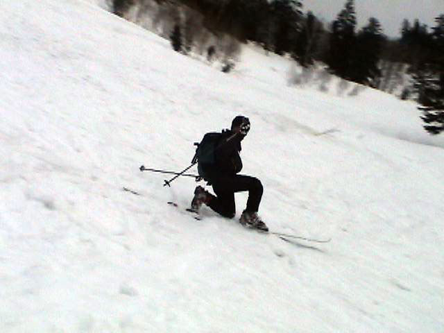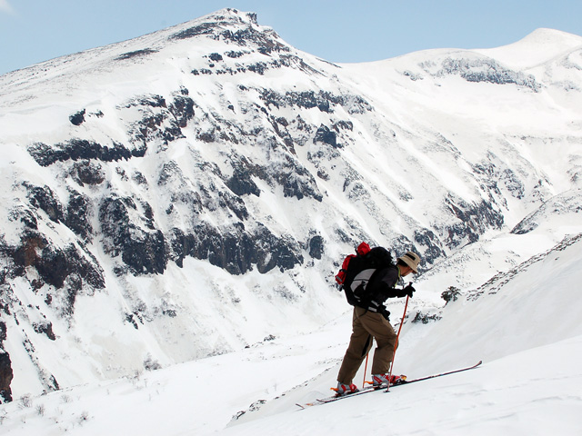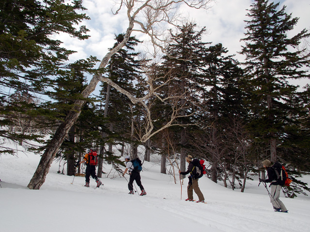 | 2007年4月29日(日) 三段山スキーツアー(悪雪焼き肉) どうも最近は天候と雪に恵まれないツアーが続く。今回も一昨日に 30〜40センチ程度の積雪があり、それが盛大に腐ってしまった状態に突入してしまった。雪には「妖怪板掴み」が多数生息していて、まともに滑ることができない。唯一の慰めは焼き肉・・ 天候:晴れのち曇り 気温:5〜10度 風速:4〜5m/s 雪量:十分 雪質:フィルムクラストと湿った新雪が縞模様になっている コース:白銀荘(9:27)〜(12:02)三段山山頂(12:22)〜フリコ沢〜白銀荘(15:05) メンバー:旦那、田中ファミリー(パパ、ママ、ゆうちゃん、Mix)、かっちゃん、スー、ピンキー、タカヤ 計8名+1犬 |