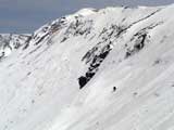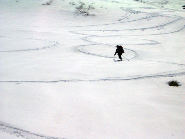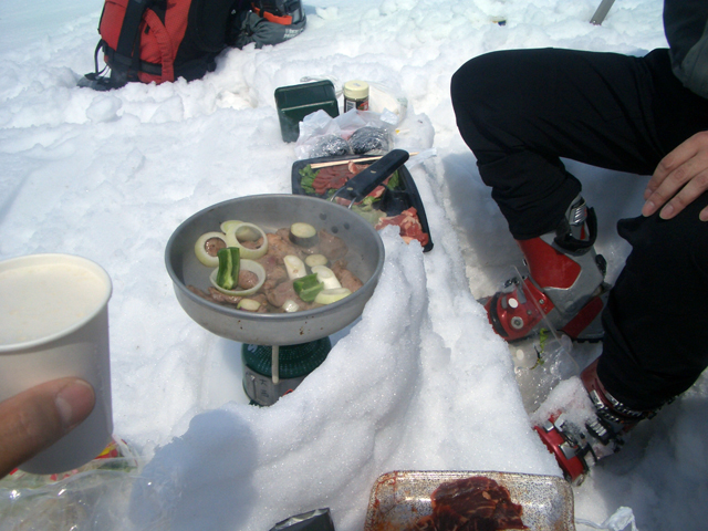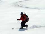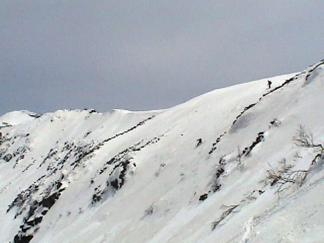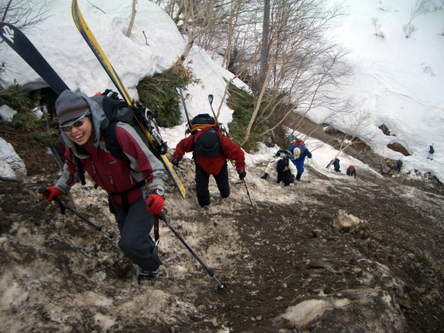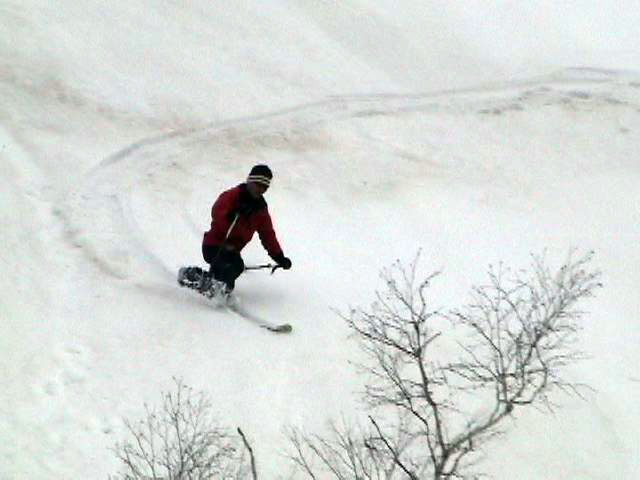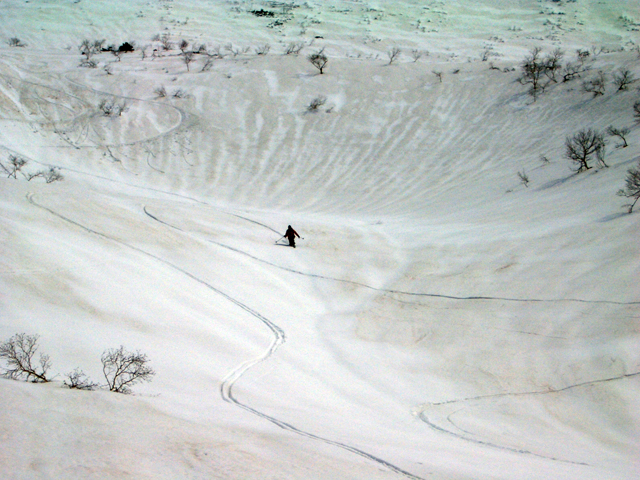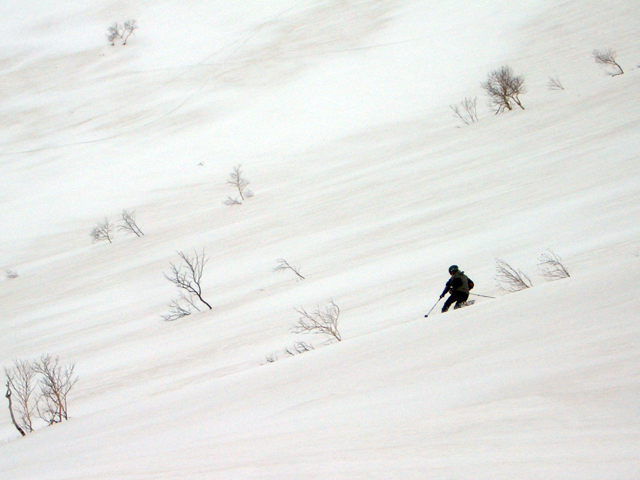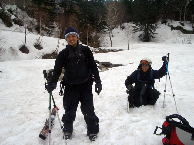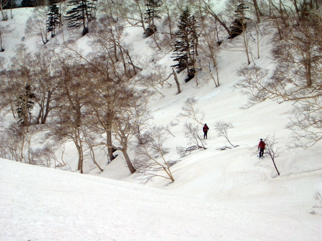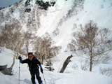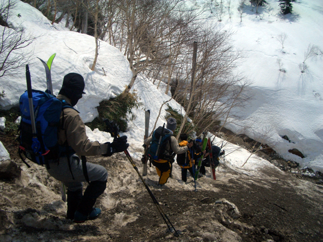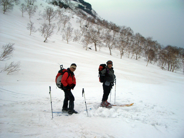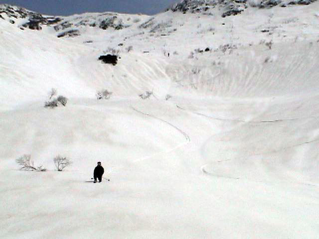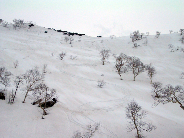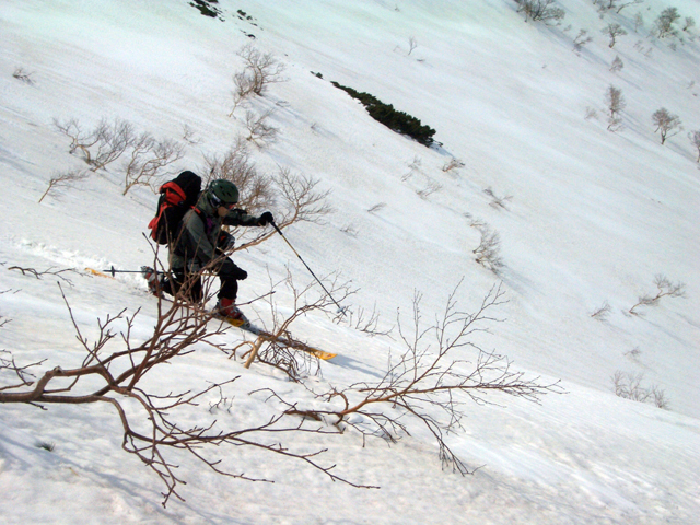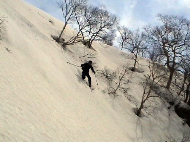 | 2007年5月4日(金)みどりの日 三峰山沢スキーツアー(ちょい悪雪) 当日、雪が豊富そうな三峰山を目的地として出発したのだが、途中で気が変わって富良野岳分岐点へ。相変わらず臨機応変優柔不断?な我々である。 山はたった5日間の間にずいぶんと雪が消えていた。ハイ松でコースが分断されているところもありそうなので、注意が必要だ。 雪質は前回よりはかなりザラメ化されていた。ちょい悪といったレベルだ。 天候:晴れのち曇り 気温:10〜15度 風速:4〜5m/s 雪量:十分 雪質:深いザラメと腐った新雪 コース:凌雲閣9:30〜三峰山沢〜12:21富良野岳分岐(1718m)12:38〜三峰山沢〜15:20バーデンかみふらの メンバー:旦那、スーさん、kinpeiさん 計3名 |