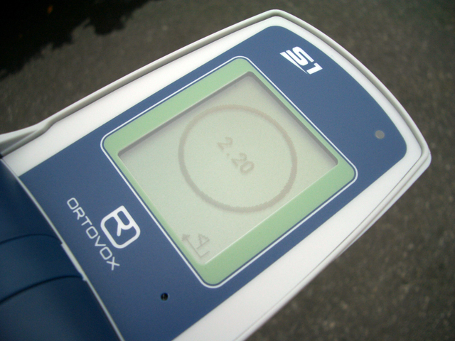 一番ショックだったのが、大の大人が三人がかりで考えてもS1の電源を切る方法が分からなかったこと(メニュー画面から電源のアイコンを選んでselectスイッチを押す)。これって、第三者が操作しなくてはならないこともあるビーコンにとって、かなり致命的なことではないだろうか?動作中であるこを示すインジケーターランプの見づらさ(筐体内に埋め込んだ弱めのランプ光を透過させるという、おしゃれなデザイン)、埋没者アイコンが不気味だったり(距離をアイコンの大きさに反映させるのはやりすぎだと思う)・・ORTOVOXって名機のF1以降どうしちゃったの?といったところだ。