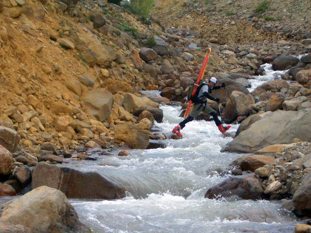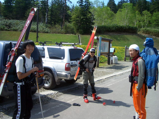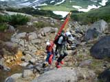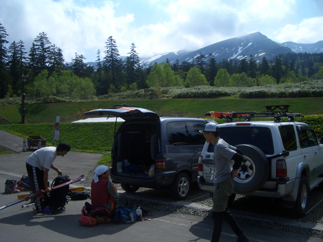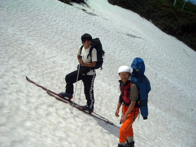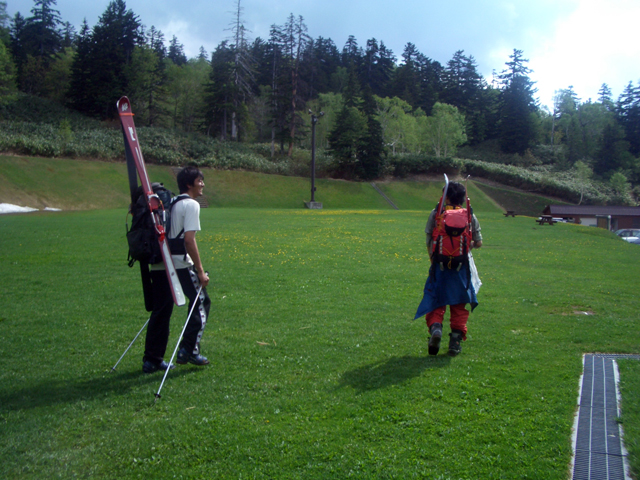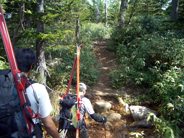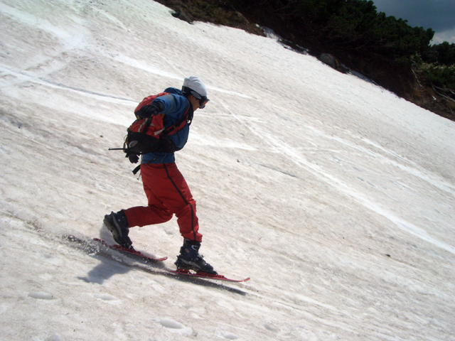 ![]() 板を背負って出発 テレブーツは履いたまま |