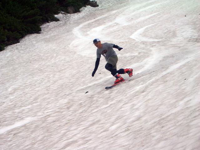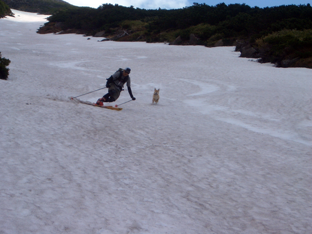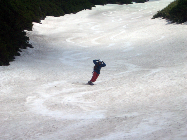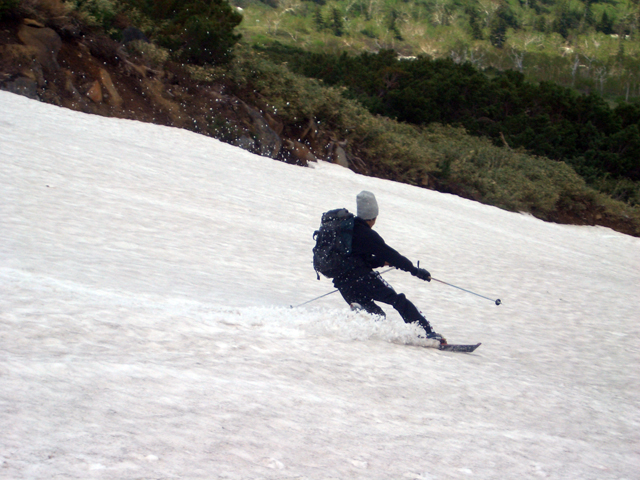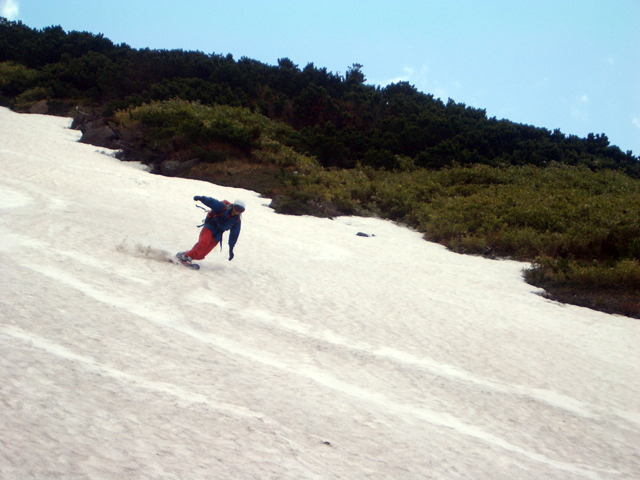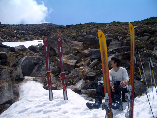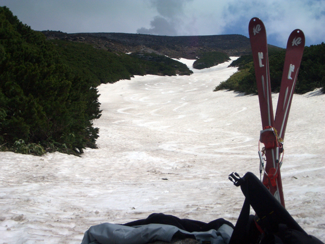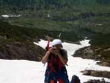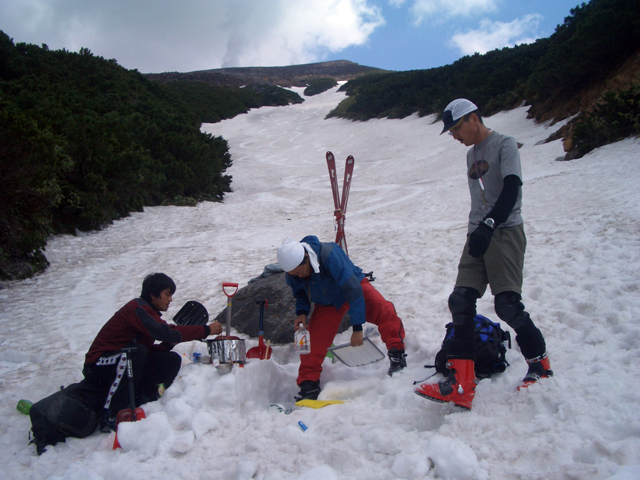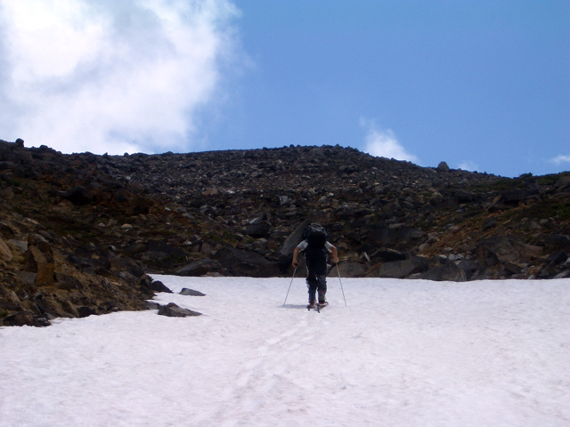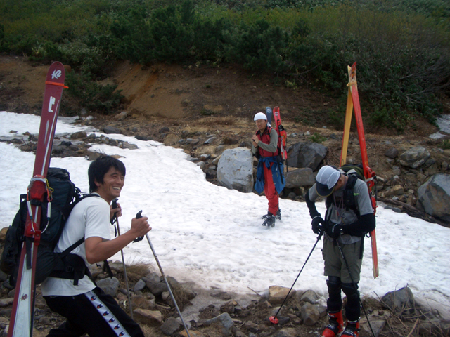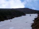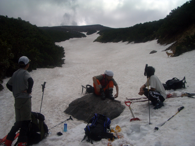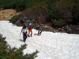 ![]() 天候が悪化してきたので、急いで撤収 雪渓末端 |