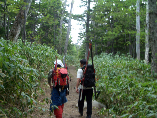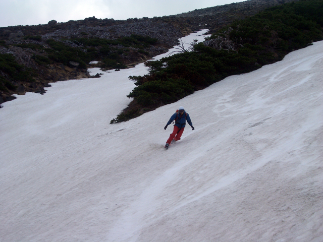 ![]() 今回はYの字の左側を登る 田中パパと枯れたハイ松帯 たかさん撮影 |
