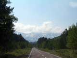 ![]() 白樺街道 目指す山並みが綺麗に見える |
