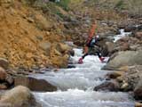 ![]() 千春沢を間近に見る 左手の沢も細いが続いているようだ |
