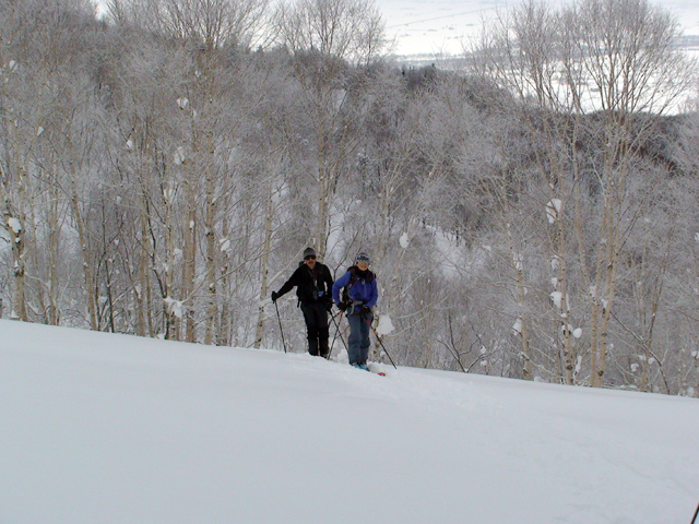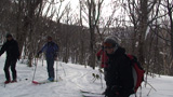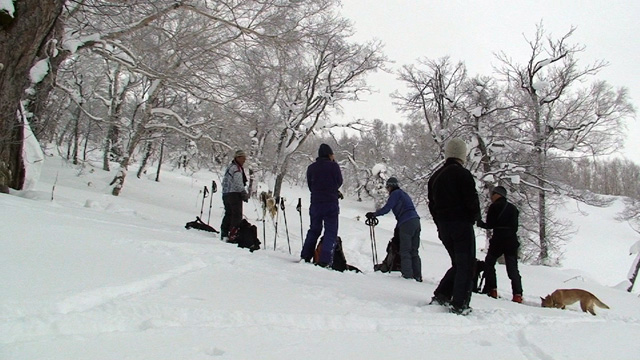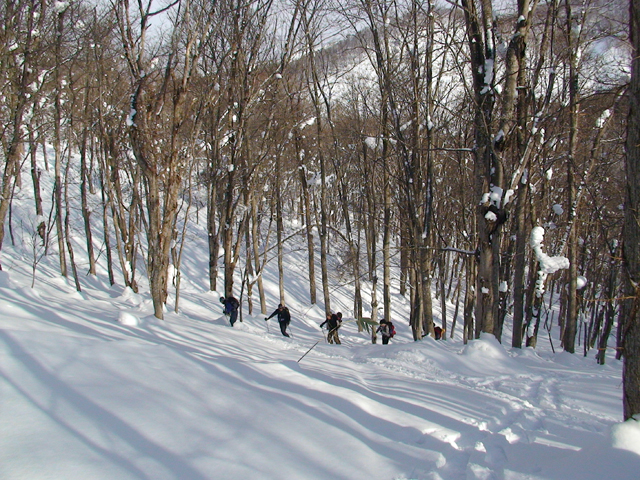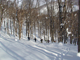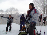 | 2008年2月3日(日) 音江山スキーツアー(愛ちゃんラストラン) 今回は、愛ちゃんにとって大事な今シーズンラストスキー。行き先をずいぶんと悩んだ結果、久しぶりに音江山とした。当日は知り合いも同じ山域に入っているので賑やかに楽しめそうだ。 天候:晴れ時々曇り時々雪 気温:-7〜-3度 風速:無風 雪量:十分 雪質:30〜40センチのパウダー コース:採石場9:17〜登山口9:50〜12:20音江山山頂付近12:40〜13:58登山口〜14:12採石場 メンバー:旦那、田中パパ、ママ、愛ちゃん、ぱっちまん、kinpeiさん、マッキー、Mix 計7名+1犬 |