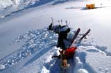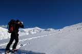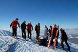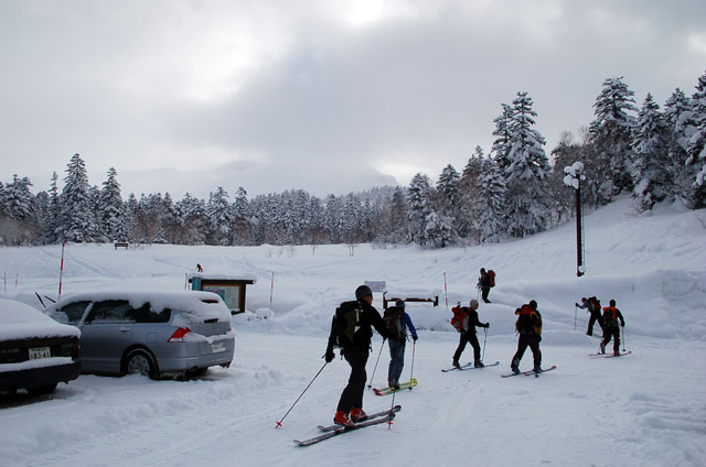 のんびりと滑降準備をしてから西の谷へ滑降開始。