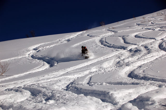 久しぶりにフェイスショットを味わいながらパウダーを楽しんだ。新雪が深すぎてスピードが乗らないという声もあったが、それは体重が足りないのだ。