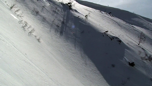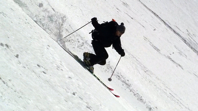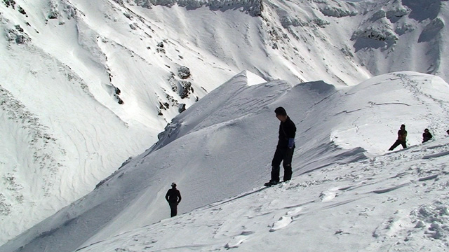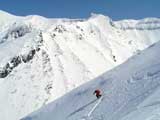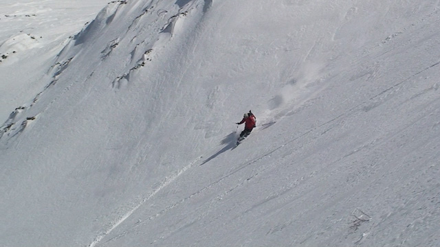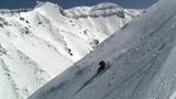 雪庇からジャンプ気味にエントリー