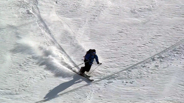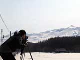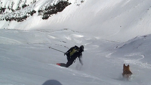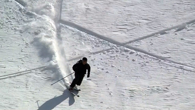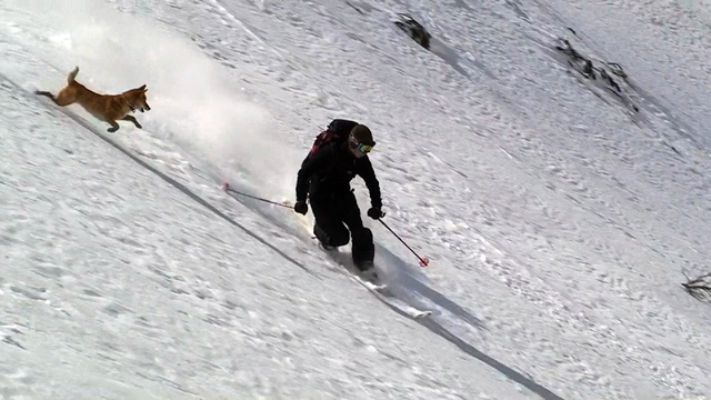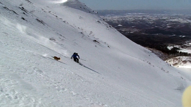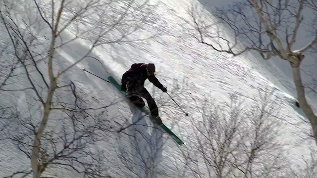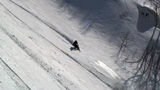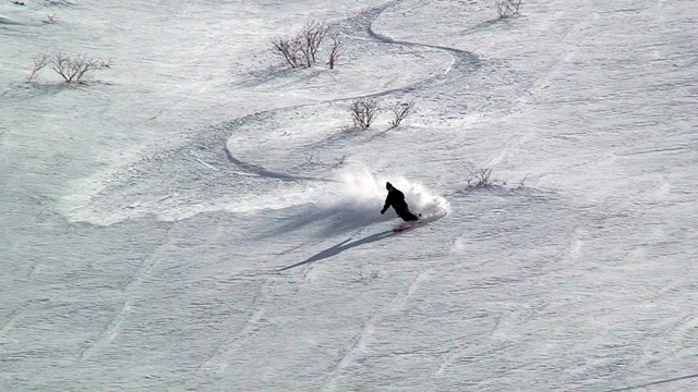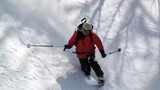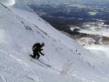 ファーストはマッキー。未知の雪質へ猛然と突っ込んでいく。