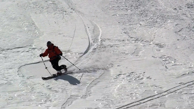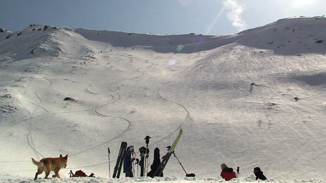 最後はフィルムクラストの東谷を滑り、ザラメが光るナマコ尾根を流して終了。