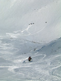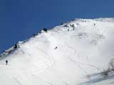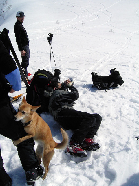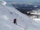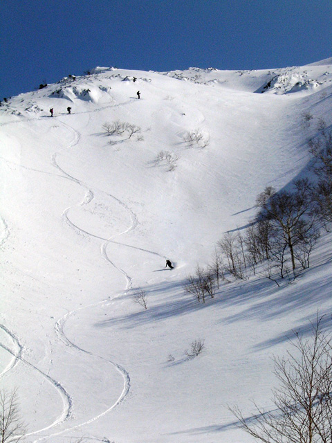 なんとか無事にフリコ沢を滑降し大テラスへ。ここの大斜面では若手が登り返して素晴らしい滑りを見せてくれた。