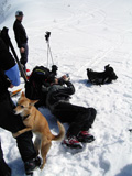 滑降の終わった連中が安全地帯で見守っている