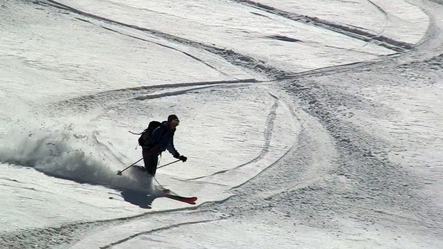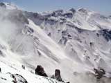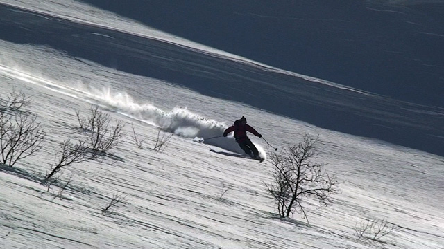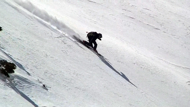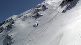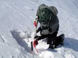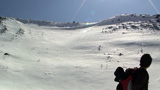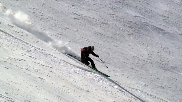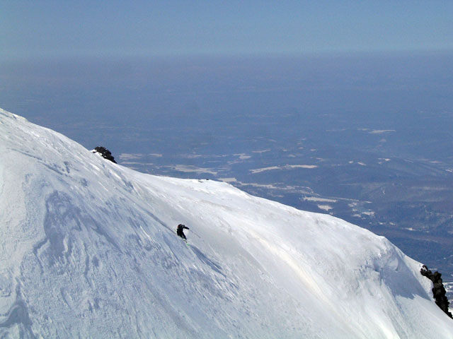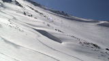 難しいクラスト斜面に手こずる。えーと、さらに私が弱層テスト(-15センチに評価3)の際に斜面に放り投げた雪が、細かで堅い地雷となってスキーヤーを襲ってしまったようだ。申し訳ない。