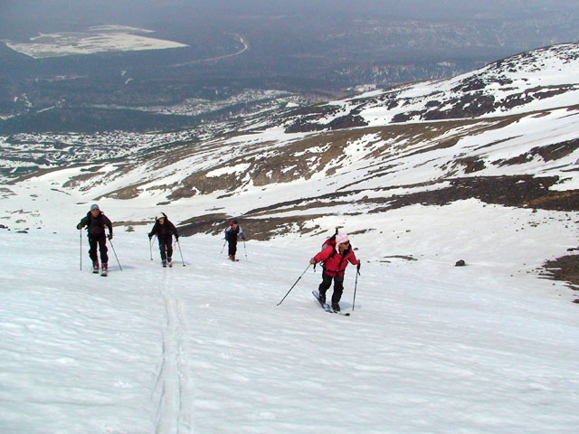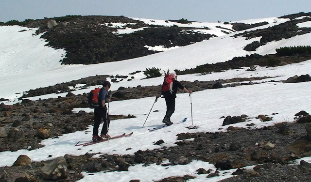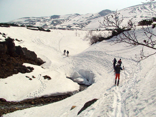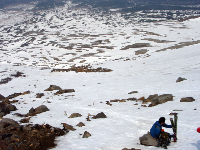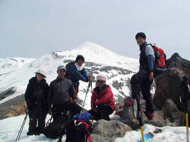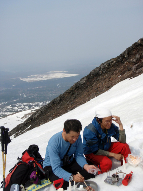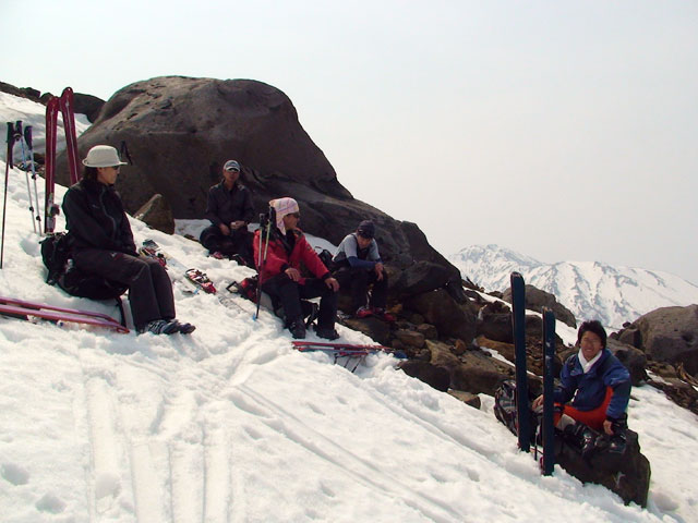 | 2008年4月20日(日) 前十勝スキーツアー(残雪と焼き肉) 天候:快晴 気温:8〜10度 風速:無風〜2m/s 雪量:ギリギリ大丈夫だった 雪質:深いザラメ〜腐った雪 コース:白銀荘〜前十勝ピーク〜白銀荘 メンバー:旦那、kinpeiさん、naokissさん、takahasiさん、スーさん、キャプテン 計6名 |