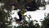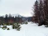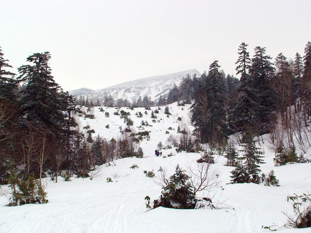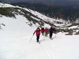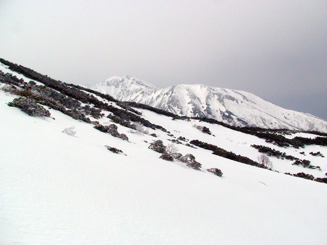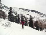 久しぶりの新雪の感触がうれしくてペースが上がる。西の谷周辺の雪は少ないが、うまくルートを取るとハイ松を避けながら登っていける。