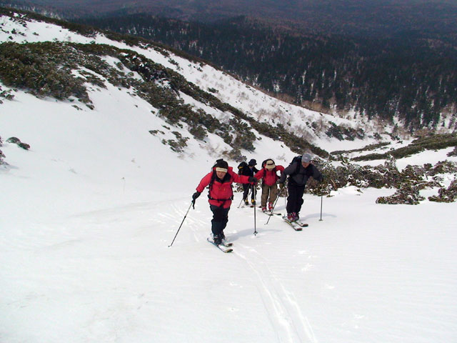 | 2008年4月29日(火)昭和の日 三段山スキーツアー(奇跡の新雪) 天候:くもり時々晴れ 気温:2〜5度 風速:無風〜5m/s 雪量:不足気味 雪質:ハードバーンの上に5センチの新雪 コース:白銀荘〜西の谷〜白銀荘 メンバー:旦那、スーさん、kinpeiさん、naokissさん、かっちゃん(TBC道北)、こうたろーさん(近文イーグルス) 計6名 |