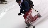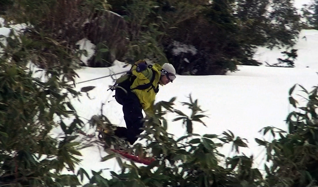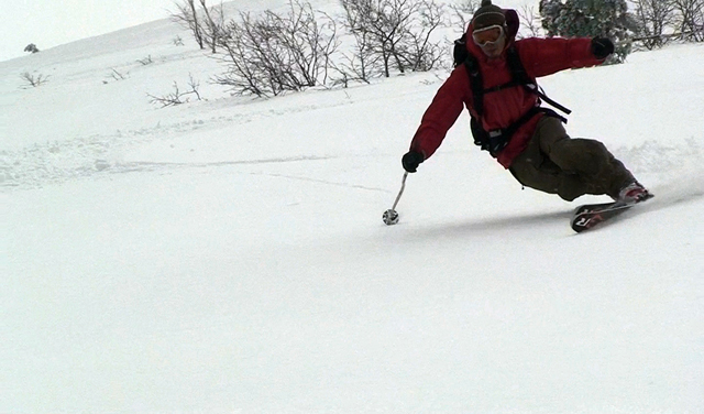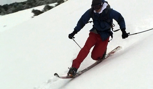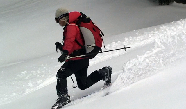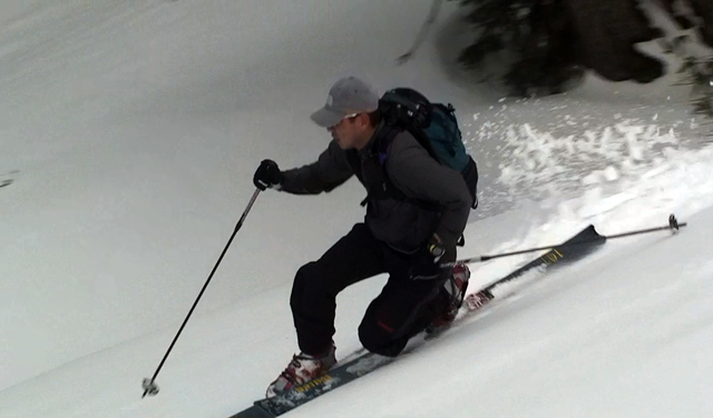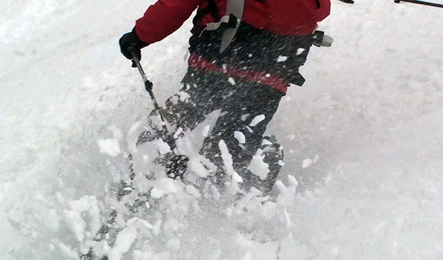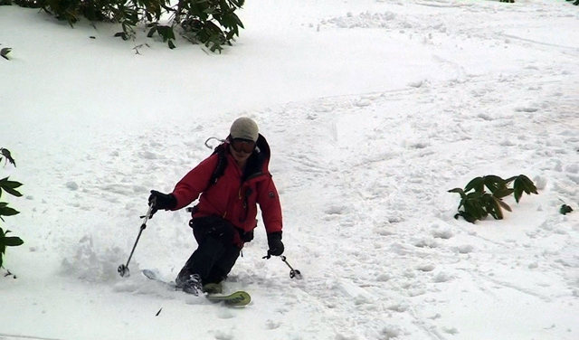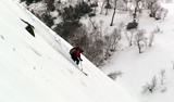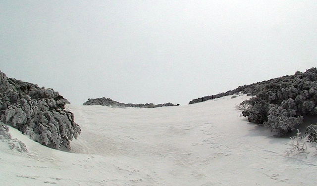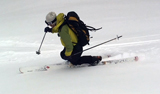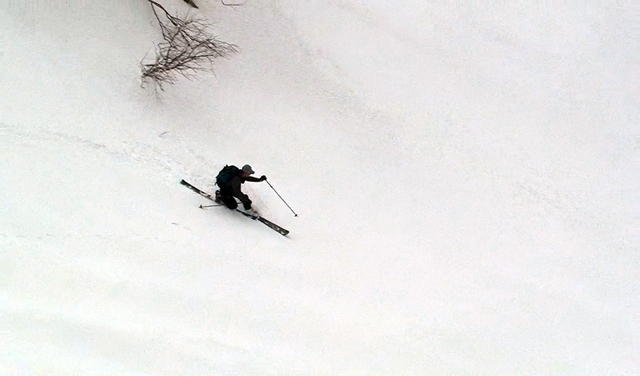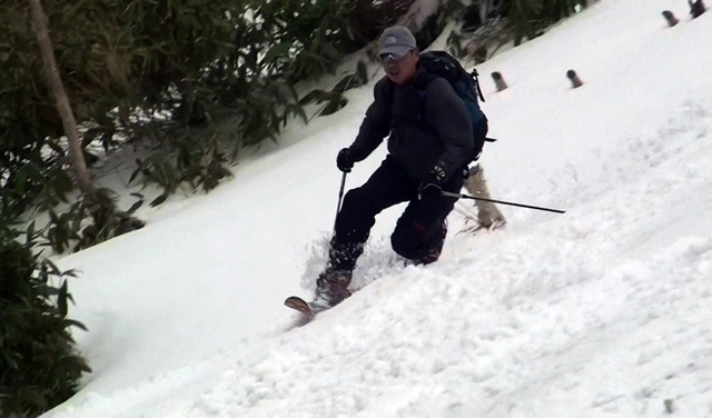 一段目付近では、さすがに雪が腐ってきていてブレーキが掛かり気味だった。