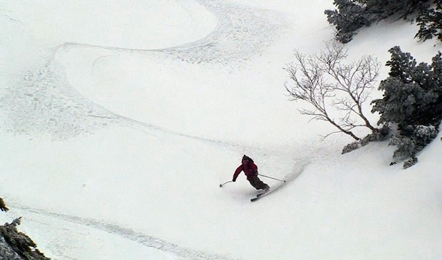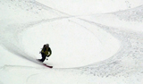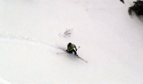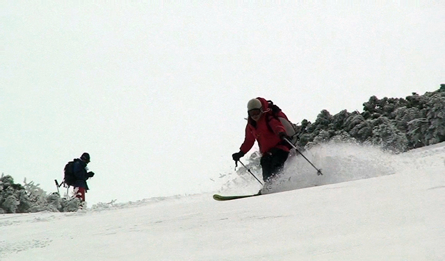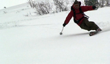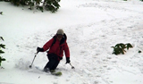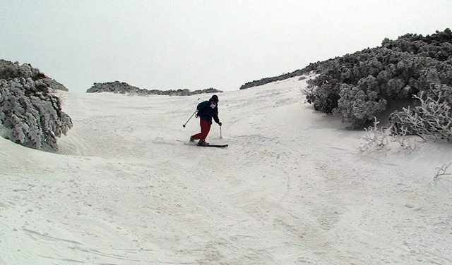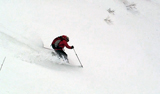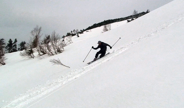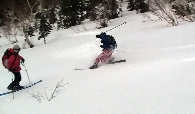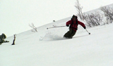 ハードバーンの上に5センチ程度の新雪だが、とても快適に滑ることができた。この時期としてはグッドコンディションだ。皆、結構派手にスプレーを上げながら滑る。