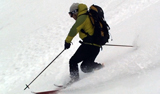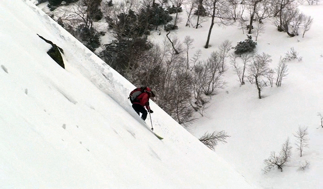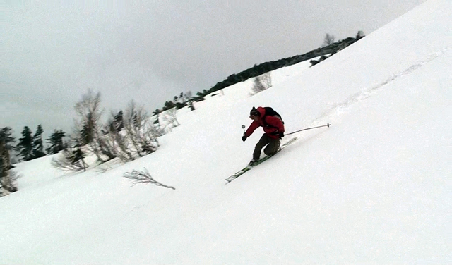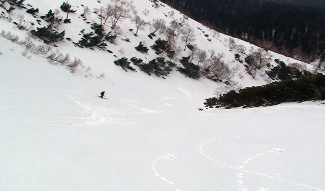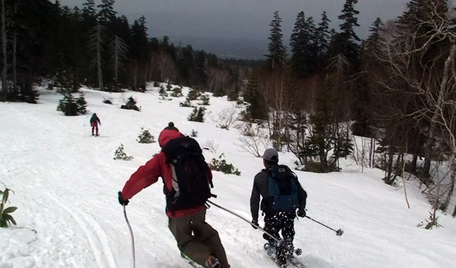 今回は天候が午後から崩れる予報だったので、山頂はきっぱりとあきらめて西の谷のおいしいところだけを滑ることにした。