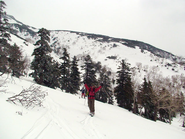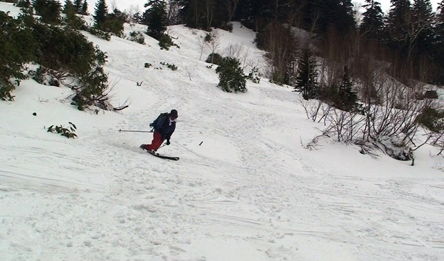 西の谷〜西の尾根と快適に滑降。良いイメージを壊したくなかったので、そのまま登り返すことなく下山。