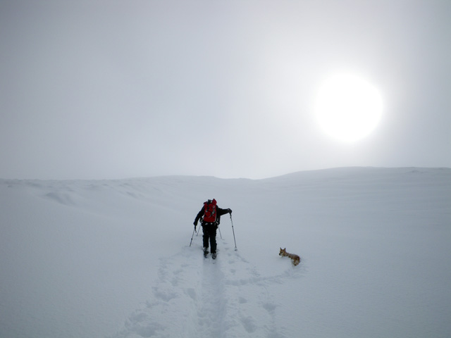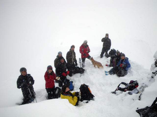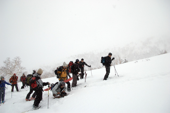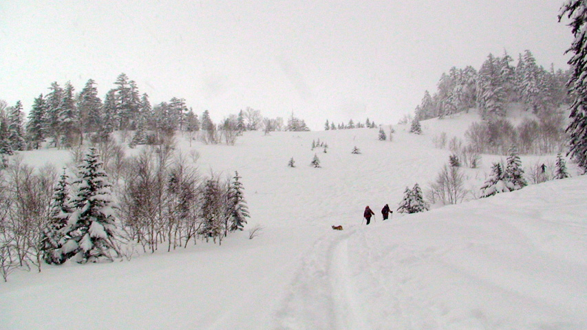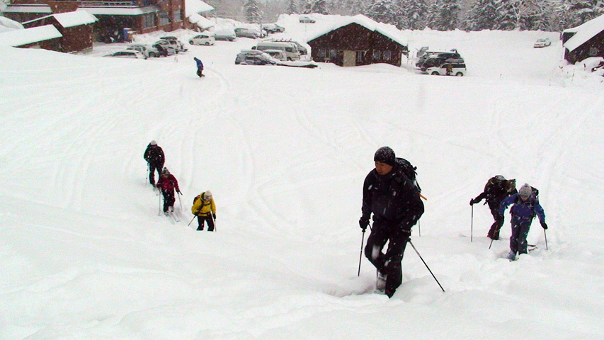 廊下付近から人影を頼りに、なんとか滑ることができた。ピークを踏めただけでもよしとしよう。
