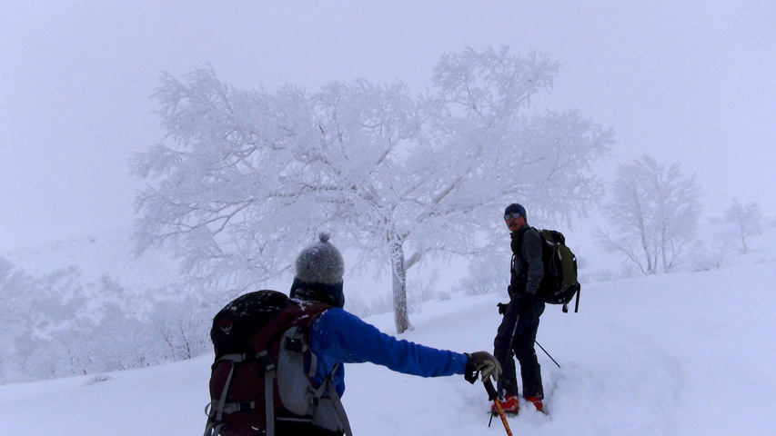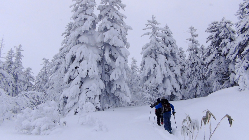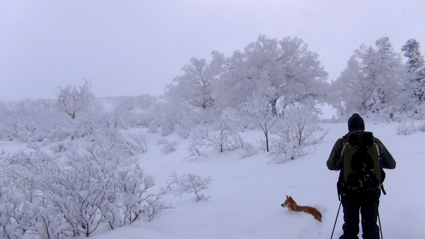 他に入山者が居ないので、最初からたっぷりと軽い雪のラッセルを楽しむことができた。
