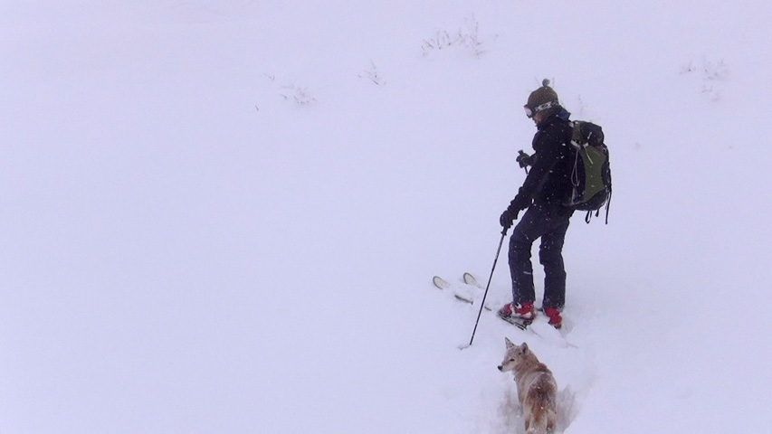 雪量:まだ全体的に少ないが、十分山頂までスキー登行可。ラッセルは膝下程度。