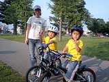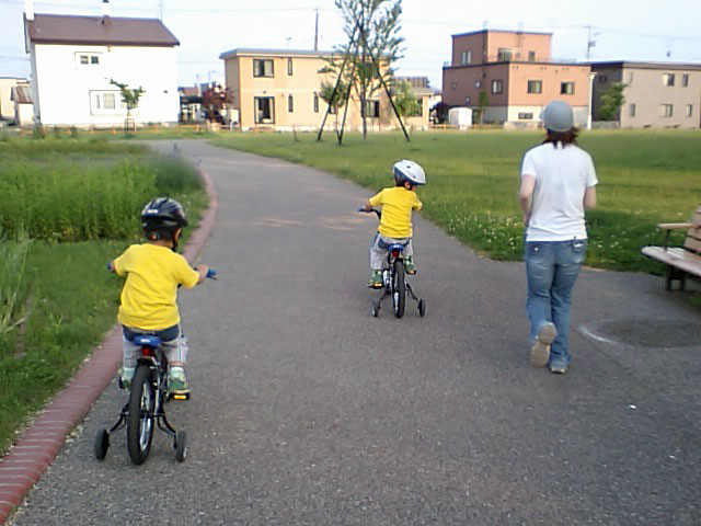 | 2008年6月28日(土) クリスタルパークサイクリング(トレックでジョギング) 目的地:クリスタルパーク 天候:晴れ 気温:24度 風速:無風〜3m/s コース:我が家〜クリスタルパーク メンバー:旦那、ゆきこ、子供達 計4名 トレーラーバイクは、旦那も子供達もとても気に入っているのだが、ただ後ろに乗せているだけでは自転車の練習にならないので(子供達、まったく漕ごうとしない)、TREKのキッズバイクを購入。 |