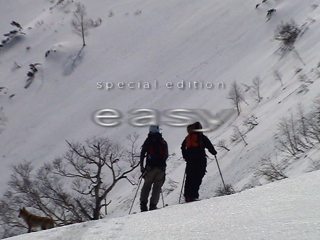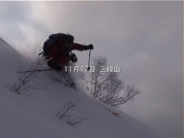 | 三段山クラブでは1999年の発足当時より、三段山周辺の景観と共にテレマーカー達の滑りや、登攀の様子などを紹介するオリジナルビデオを制作しています。そのビデオの最新版が、「三段山2003」略称SY2003です。 |