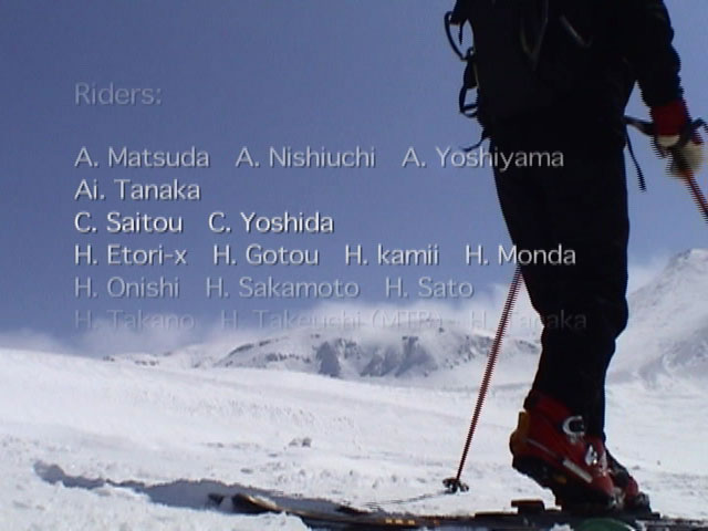 | 「三段山2003」約32分 このビデオは、2002年〜2003年の一年を通した三段山クラブの活動を、以下の8パートに分けて紹介した内容となっています。 各パートのご紹介 ●sandanyama 2003 summer (MTB, BOULDERING, KAYAK, GRASS SKI session) 知られざる、三段山クラブの夏の活動状況。MTB編では、道内のDHレースで連戦連勝の高校生ライダー”たけちゃん”、ボルダリング編では5・12クライマーの”かっちゃん”、カヤック編ではNABゆーださん、グラススキー編ではエトリックスさんなどが活躍してくれています。 ●BC diary 1 日常的BCライフとは?合計44回ものBCツアーをすべて紹介します。つまらないツアーなんてありません。笑いあり、感動あり、怪我あり・・毎回なにかしらのドラマがあることと、風景の移り変わりを感じて下さい。 2002年10月から2003年3月までのBC日記です。 ●special edition serious special editionでは、各のコンセプトに合わせて映像をセレクトして構成しています。 シリアス・・僕らには似合わない言葉ですが、実際厳しい環境のBCではヒリヒリするくらい緊張し、シビアな滑りが要求されるシーンがあります。 ● BC diary 2 2003年3月から2003年5月までのBC日記です。 ●special edition easy イージーに行こう!素晴らしいロケーションを背景に、楽しく登り、スマートに滑ろう! 僕らの理想のツアーの姿がここにあります。 ●BC diary 3 2003年5月から2003年6月までのBC日記です。最後は赤岳のラストランで終わります。 ●special edition eccentric 狂ってる?カッ飛んでいって、クラッシュ!ヒートアップした滑りは、もはや狂気と紙一重だ。 意味なんて無い。ただ面白くてしょうがない。一緒にハイになろう! ●ending 主にBCに入るまでの、クラブ員の生の姿を紹介しています。前日のミーティング、目覚めから朝の準備、途中コンビニに寄って買い物・・そして、だんだん近づいてくる山々。 そしてツアーが終わり、夕焼けの中の撤収・・ 「アフロマン ストーリー(ぱっちまんの秘密)」や、「真の三段山山頂登頂」などのショートストーリーも入っています。 DVDについてのお問い合わせ:sandan@sandan.netへメールを下さい。 どうやって、このビデオは制作されたか?: 三段山2003制作日記はこちら。 |