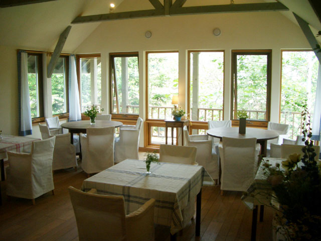 山深い場所の廃校を中心に社屋、工場、ショールームが集落のように建っていて、そこにカフェがありました。