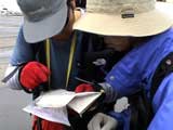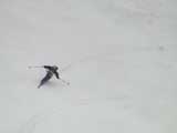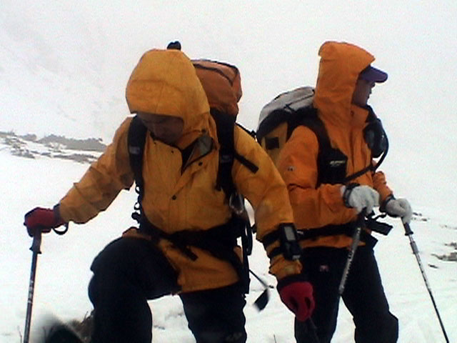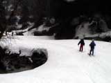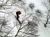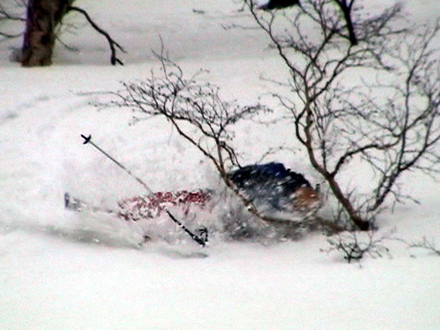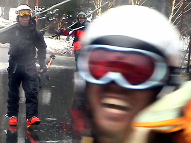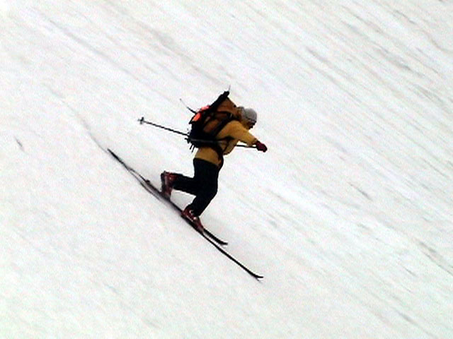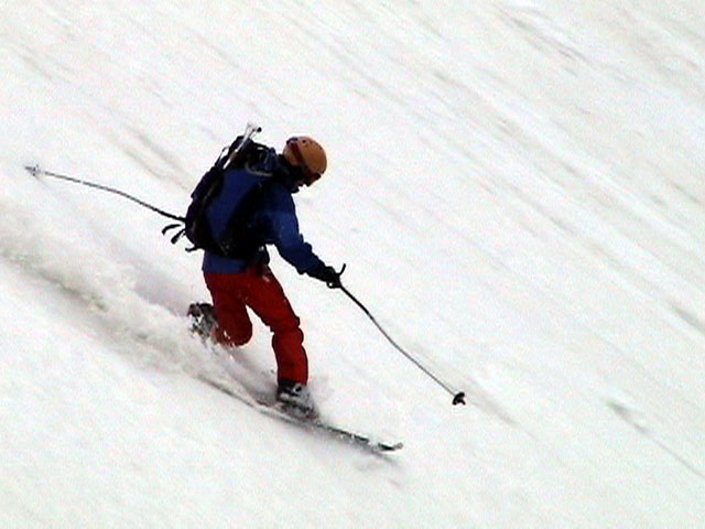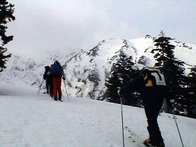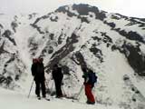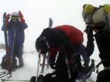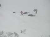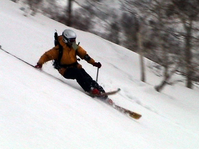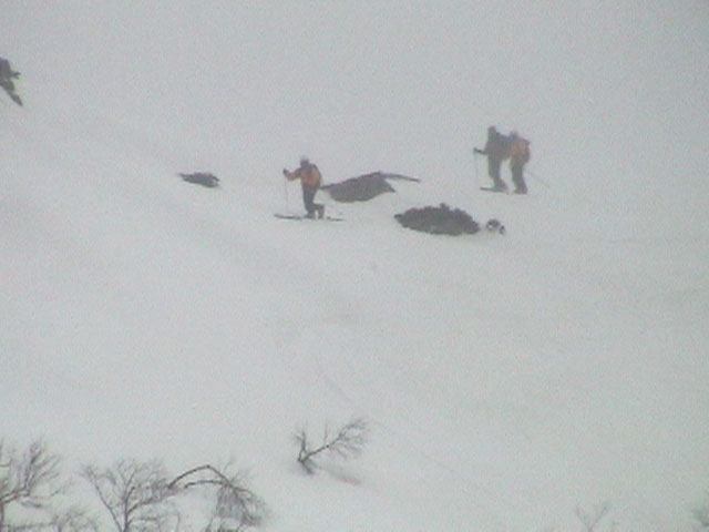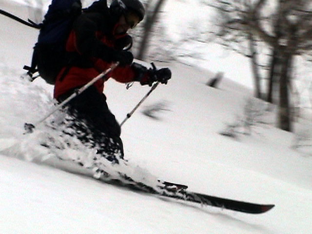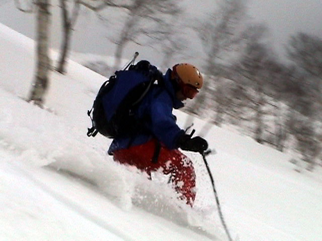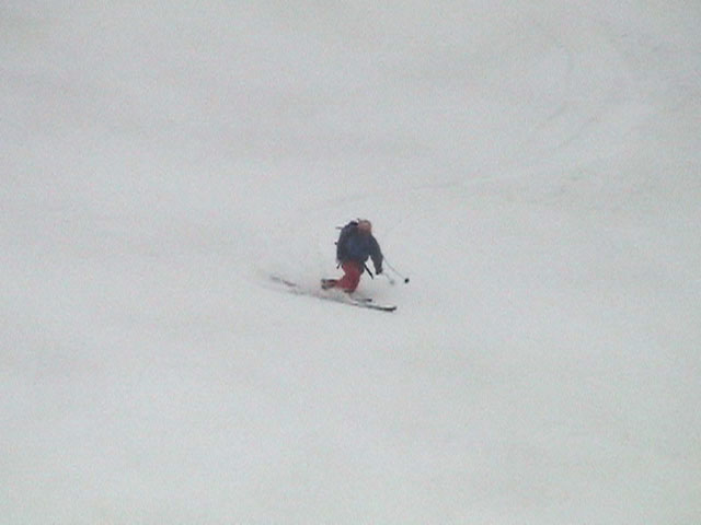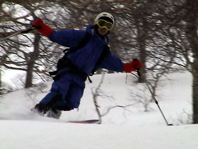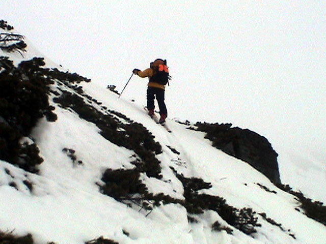 | 2003年4月29日(火)みどりの日 三峰山スキーツアー(土砂降りスキーは盛り上がる!) 熊の出没が心配な時期なので、装備としては一応熊避けスプレーを装備。あやぼんが上下ツルツルのカッパを着ていたので、旦那は滑落をかなり心配した。 凌雲閣を出発するときには、天候は高曇りでまあまあの条件だった。雪は例によって深いザラメ。 途中、谷をスキーで滑降したりしながら順調にテラスに到着。ここまでは天候もなんとか保っていた。ここからさらに三峰山への稜線へ上がるかどうか悩んだが、せっかくだからとさらに上がってみた(大失敗)。 稜線に上がるにつれて、どんどん南西の風が出てきて雨がぱらつき始めた。そして、新得側の雲がこちらへ・・まずい、雨は降っても良いが、ホワイトアウトだけは困る。 そして・・・稜線に到着すると同時に、めでたくホワイトアウト。こうなるともう滑降の楽しみは放棄するしかない。 三峰山の崖からの滑降を楽しみにしていた、かっちゃんやリチャードはかなり不満そうだ。 雲の下へ出て、やっと視界が回復しても雪の状態は大変芳しくなかった。ハイマツの付近は落とし穴状態。深いザラメはハイサイド吹っ飛び転倒を誘う。 旦那は、ビデオカメラのレンズに付く雨粒をふき取る作業に疲れ果てた(もーいや)。 深いザラメに足を取られて灌木に顔面から激突した人も居たけど、ヘルメットのおかげか概ね無事。そういえば今回のメンバーは全員ヘルメットを着用していたな。 かなりやられながらも、新しい斜面を開拓しながら三峰山沢まで降りてきた。そのあたりから雨足が強くなり、ついに土砂降り状態へ。 こうなると、あやぼんのカッパがうらやましい。 「イェー!」「雨最高!」「土砂降りスキー!」などと最後に大いに盛り上げてツアー終了。終わってみると意外と楽しかったよ。トラブルや悪条件を楽しめるメンツでした。 天候:曇り〜雨 気温:測定していません。寒くはなかった。それより濡れて・・ 風速:0〜10m 雪質:深いザラメ 雪量:十分 メンバー:旦那、ゆきこ、toshi、ぱっちまん、スー、かっちゃん(俺流)、リチャード、あやぼん 合計8名 コースタイム:凌雲閣9:00-11:47三峰山の稜線(1675m)12:03-13:30バーデン上富良野 |