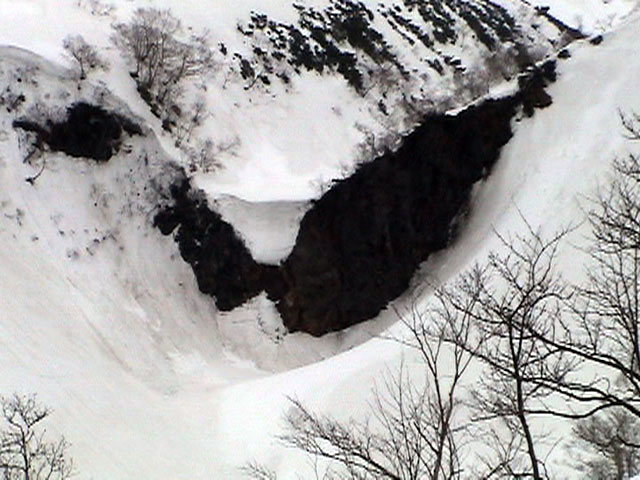 コース上に雪崩と滑落の危険性の高い箇所が多いため、トラックログ付き地図は無し。